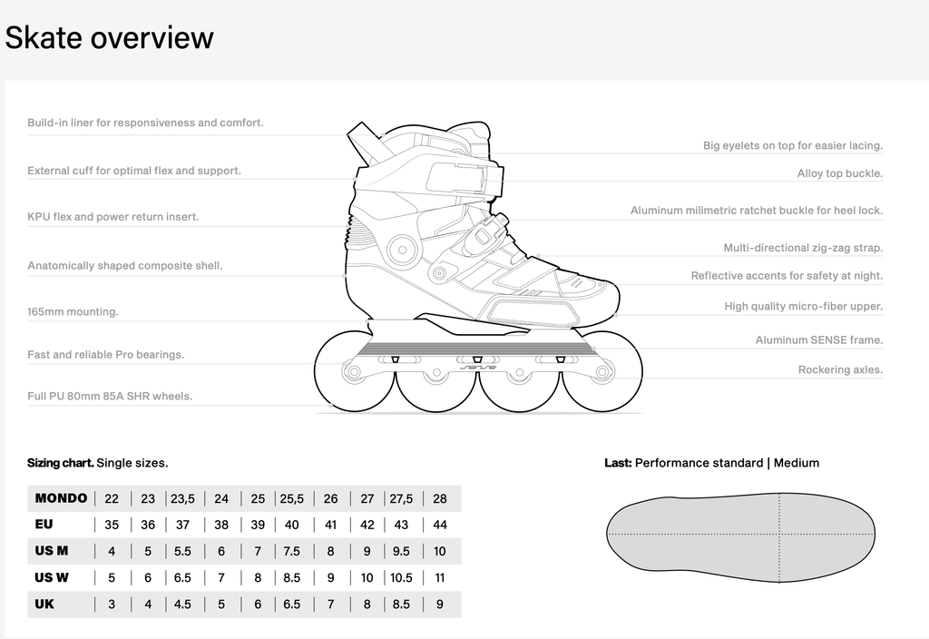 The minimalist upper is carefully hand-lasted over the shell, reducing friction and unnecessary bulk while delivering a snug fit that moves with you. The external cuff and KPU flex insert strike the perfect balance, giving you forward flex and power return without compromising lateral support. Every detail has been designed with skaters in mind: durable waxed laces, alloy top buckle and 45° ratchet buckle, and an adaptive zig-zag